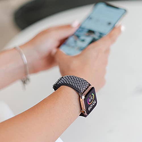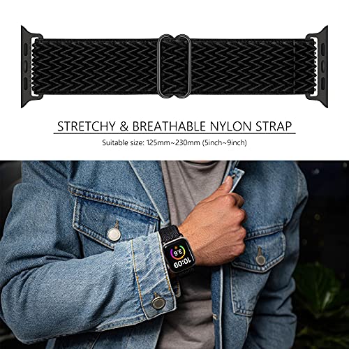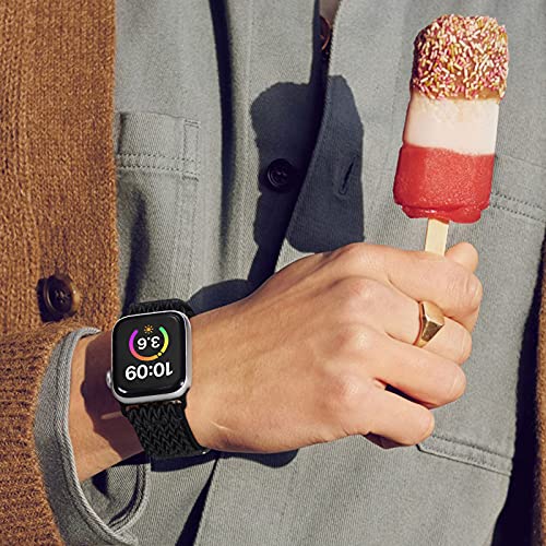 KADES Stretchy Solo Loop Strap Compatibile con Apple Watch 38 mm 40 42 44 elastico regolabile Sport Braided Donna Uomo iWatch Series 6/5/4/3/2/1 SE e Acciaio inossidabile, colore: 2 pezzi, nero blu