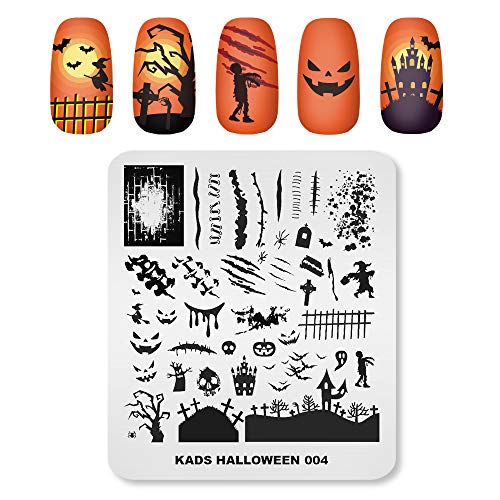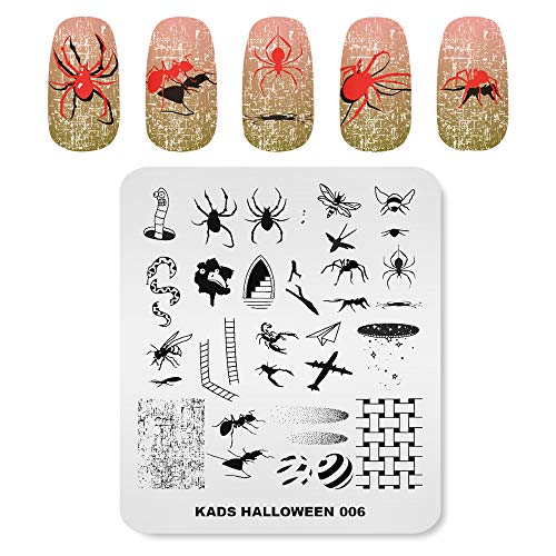 KADS Set di 3 piastre per stamping unghie, set di stampi per nail art, tema: Halloween, horror, teschio, pipistrello, strega, ragno (Halloween 2)