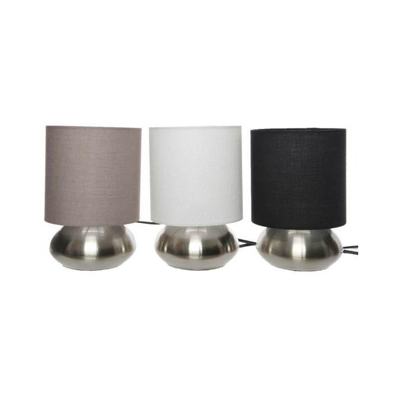 Lampada da tavolo con paralume in tessuto colorato con base in metallo. In tre modelli assortiti: bianco, nero e taupe. Ideale per piccoli salotti, sale d'aspetto e simili: luce calda e soffusa. Dimensioni: Ø15x(h)22,5cm. Attacco lampadina: E14 - max 40W Cavo nero da 1,3m. Scheda Tecnica Dimensioni: Ø15x(h)22,5cm. Attacco lampadina: E14 - max 40W Cavo nero da 1,3m.