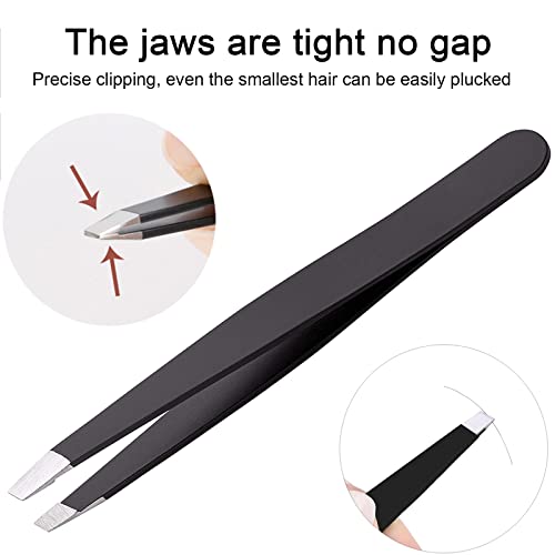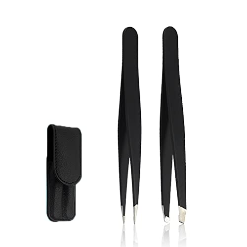 Kafeiya Pinzette Sopracciglia,Pinzette per Sopracciglia Professionale,Acciaio Inossidabileper,punta migliorata-con rivestimento antiscivolo,peli incarniti,per Adatto a Uomo Donna(2 Pezzi Nero)