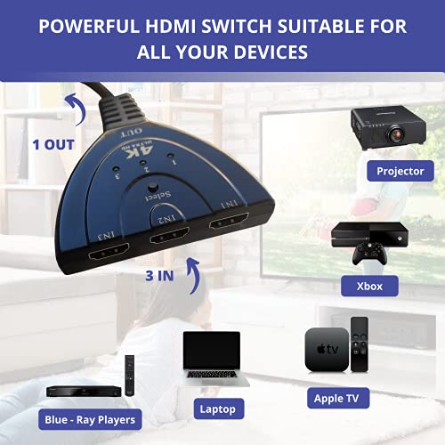 Garantire la ricezione della migliore qualità video possibile durante il passaggio. È in grado di supportare fino a 4K @ 30Hz, per risoluzioni fino a 4K. Ora puoi collegare il decoder via cavo, la console di gioco, il lettore DVD e il ricevitore AV alla TV contemporaneamente con un solo cavo! Switch HDMI è progettato per essere compatibile con qualsiasi apparecchiatura esistente che utilizzi una connessione HDMI.