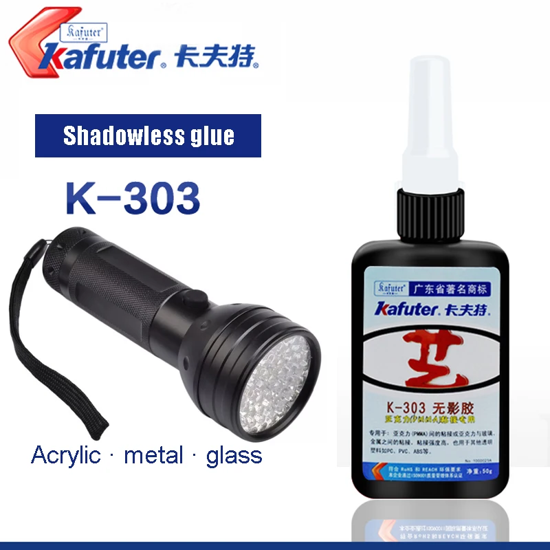 Kafuter 50ml K-303 UV glue acrylic transparent adhesive UV curing adhesive and Glass Adhesive with 9/51LED UV Flashlight