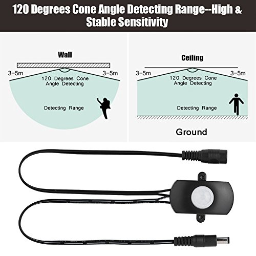 Kafuty Motion Sensor Luce DC 6-24V Sensore di Movimento per Luci Interruttore a Infrarossi Interruttore a Induzione Automatica (2-360s Regolabile)(Nero)