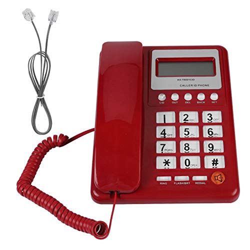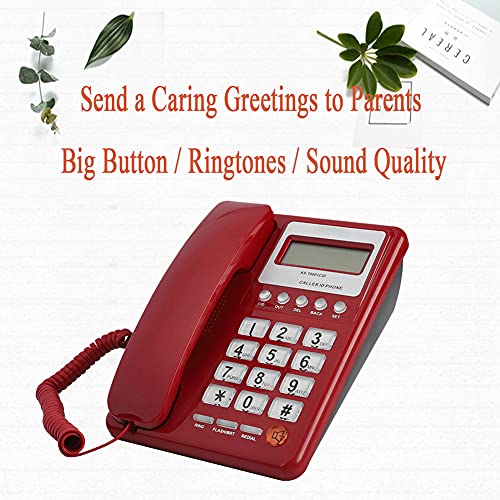 Kafuty Telefono Fisso, Telefono Corded con Display LCD & Tasti Grandi - ID chiamante/richiamare/ricomporre, Telefono DTMF/FSK per Casa Ufficio Hotel (Rosso)