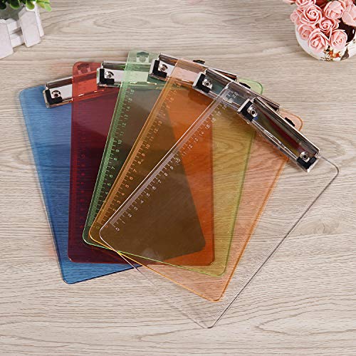 KAHEIGN 6Pz Appunti Di Plastica Trasparente A4, 6 Appunti Colorati Lavagna Porta Carta Con Clip A Basso Profilo E Il Bordo Della Scala Del Righello Per Documento Modulo Promemoria (31,5 x 22,5cm)
