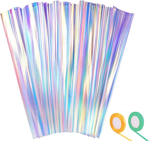 KAHEIGN 40 Fogli Carta Da Imballaggio In Cellophan, 60cm x 50cm Pellicola Iridescente Pellicola Per Confezioni Regalo In Cellophan Carta Da Imballaggio Per Fiori Con 2 Rotoli Di Nastro Di Raso Da 20 M
