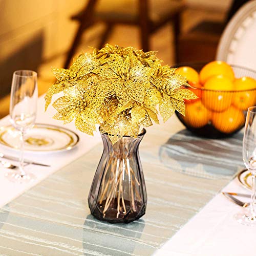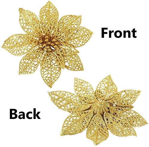 KAHEIGN 30 Pz Stella di Natale Glitterata, 7.5/10 /15 Cm Ornamento Dell'albero di Natale Ornamento della Decorazione dei Fiori di Natale per Ghirlande Ghirlande (Oro)