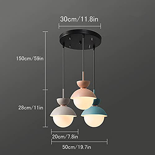 KAIKEA Lampada a sospensione industriale a 3 luci a colori, lampadario industriale a sospensione Macaron con paralume in vetro, apparecchio di illuminazione da incasso in stile vintage per cucina/sala