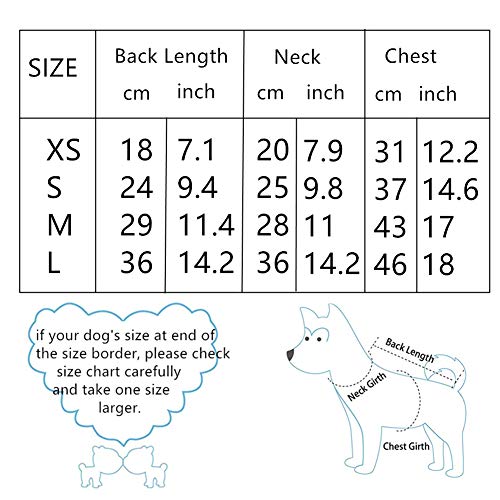 Attenzione: il tessuto in cotone morbido e traspirante offre un'esperienza d'uso confortevole per il cane, tuttavia, il materiale in cotone si ridurrà leggermente dopo il lavaggio, se le tue misure si avvicinano all'estremità superiore dell'intervallo indicato per la tabella delle taglie, taglie più grandi potrebbero essere più adatte al tuo cane. Inoltre, è meglio lavare le camicie con acqua fredda che può ridurre il restringimento.