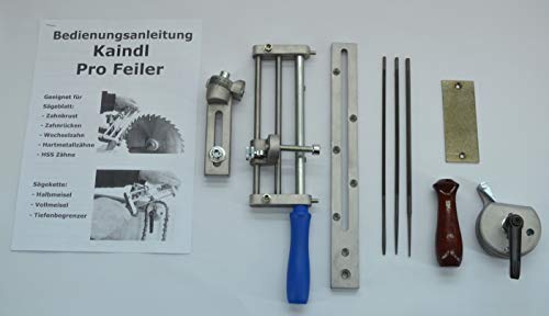 Set completo composto da: modulo di base per lame con 2 piastre diamantate, grana D91/D151, modulo aggiuntivo per catene per motosega con 3 lime circolari 4,0/4,8/5,5 mm, 1 manico per lima, 2 anelli distanziatori 16/20 - 16/30, istruzioni per l'uso (lingua italiana non garantita).
