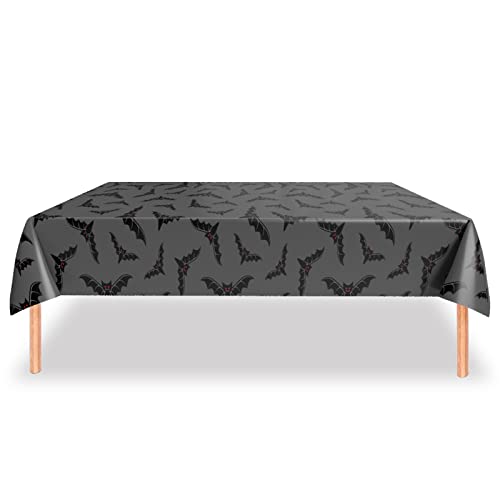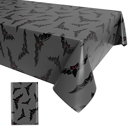 KAINSY Tovaglia di Halloween in plastica, pipistrelli grigi, grande tovaglia rettangolare di Halloween, 130 x 220 cm, usa e getta, impermeabile, decorazione da tavolo di Halloween