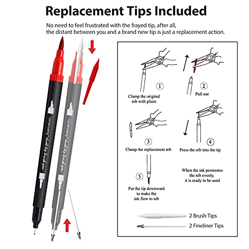 Ampie applicazioni: questo pennarello presenta un design a doppia punta ed è la combinazione di pennello da colorare e fineliner. Questo pennarello offrirà ai principianti e agli artisti ore di gioia. Puoi usare questi pennarelli in molti modi diversi, dall'uso quotidiano ai corsi estesi! Questi pennarelli sono perfetti per molteplici applicazioni da disegni, schizzi, design, calligrafia, colorazione, evidenziazione, rendering, diario, firma, ombreggiatura a illustrazioni ad acquerello.