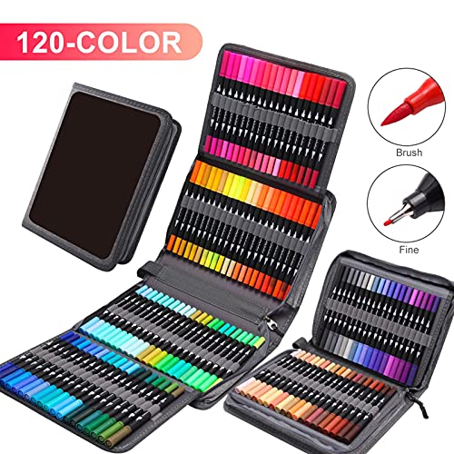Kairis Pennarelli A Doppia Punta da 120 Colori Pennarelli da Colorare per Bambini, Punta Fine 0,4 Mm E 1-4mm Punta Brush, per Journaling, Disegno, Quaderino