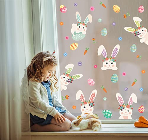 KAIRNE Adesivi per Finestre Pasqua,Adesivi Coniglietti,Pasquali Decorazioni Adesivo,Stickers Uova Pasquali,Rimovibile PVC Decorazionie Pasqua per Finestra Negozi Vetrina Porta Feste Murali Decor