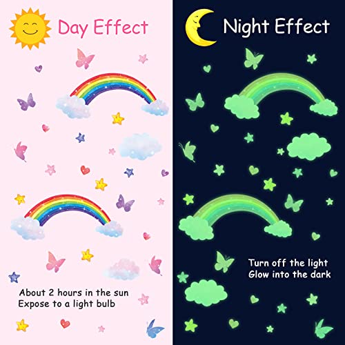 KAIRNE Arcobaleno Adesivo Luminoso,Colore Adesivi Murali Bambini Ragazza,Farfalla Adesive Parete Fluorescenti,Arcobaleno Decorazioni Pareti Cameretta Bimba,Stella Luminosi Decalcomanie per Asilo Nido