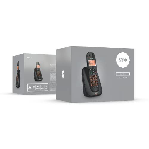 SPC KAIRO - Telefoni fisso cordless, tasti e display illuminati, identificazione del chiamante, volume extra, compatibilità GAP, modalità eco, blocco chiamate, vivavoce, rubrica a 30 contatti - Nero
