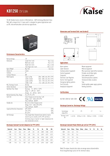 Kaise Batteria al piombo AGM VRLA 12V - 5Ah / Modello KB1250 F1 / 2 pezzi