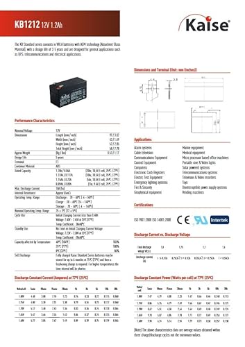 Kaise Technologies Batteria al piombo AGM VRLA 12V - 1,2Ah/Modello KB1212-2 Unità