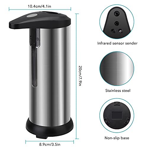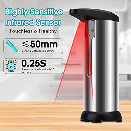 Kaishengyuan Dispenser Automatico di Sapone, 280ml Non-Contact Liquid Soap Dispenser,Dispenser di Sapone Liquido Sensore di Movimento a Infrarossi Acciaio Inossidabile per Bagno Cucina