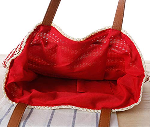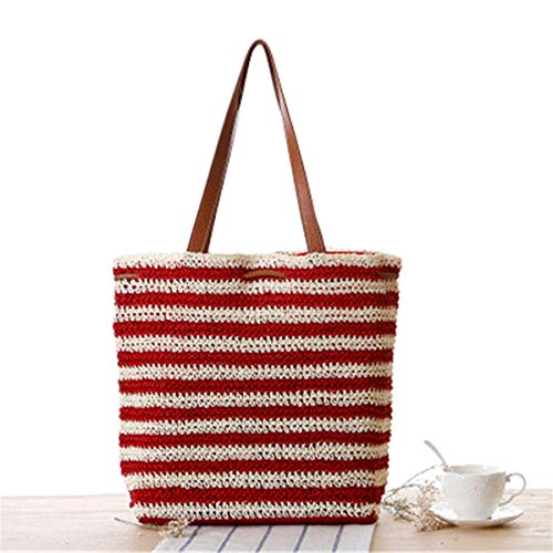 KAISHIN Borsa casuale estiva per donna Borsa da spiaggia con una spalla semplice Borsa a tracolla in paglia all'uncinetto a righe di moda (Rossa)