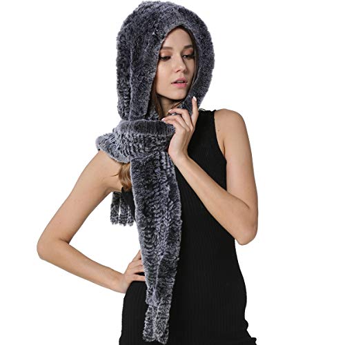 KAISHIN Cappelli in Pelliccia Invernale a Doppio Uso in Vera Lana Sciarpe per Donna Cappelli con paraorecchie in Pelliccia di Coniglio Rex (Grigio)