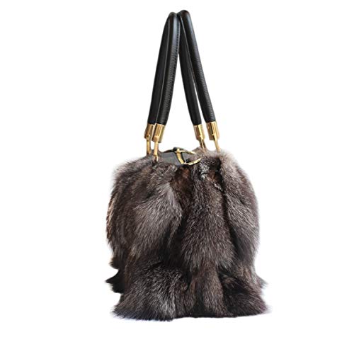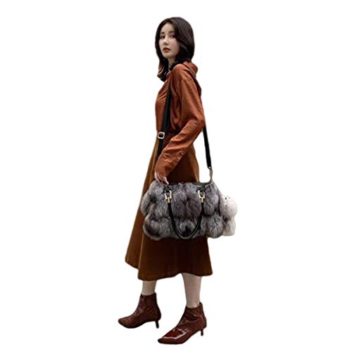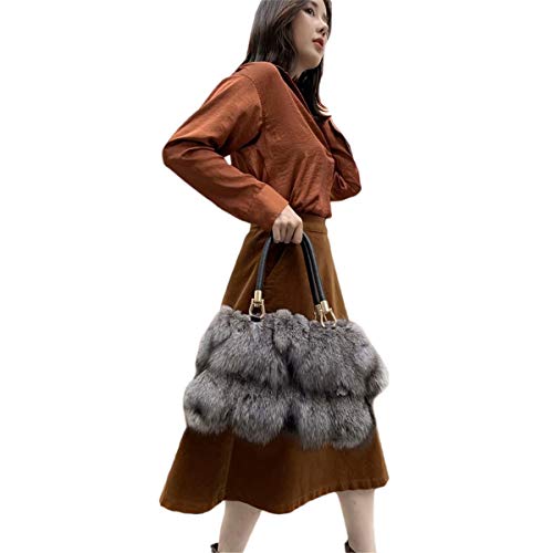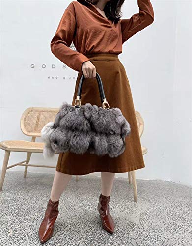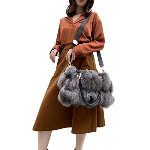 KAISHIN Moda borse a tracolla in vera pelliccia di volpe per donna Borse a tracolla con manico in vera pelle di vacchetta Borse casual grandi (Grigio A)