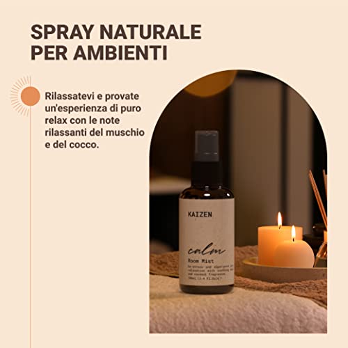 KAIZEN Profumatore per Ambienti Spray - Profumo Ambiente per Casa al Cocco e Muschio - Profumatore Ambiente Spray Rilassante - Deodorante Ambiente Spray a Lunga Durata - Idea Regalo per la Casa,100ml
