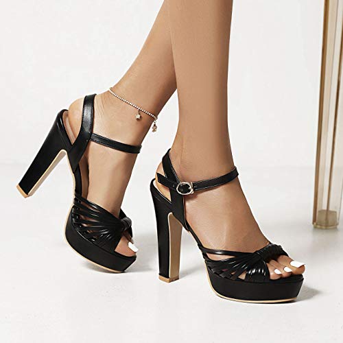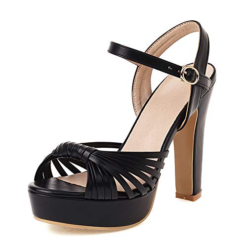 Kaizi Karzi Donna Moda Platperm Sandali Alto Tacco a Blocco Sposa Scarpe Punta Aperta Fibbia Sandali Pu Cuoio black size 40 Asian