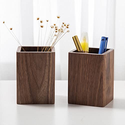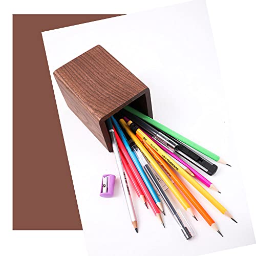 Kaizuca Portapenne in legno, organizer per cancelleria, portapenne quadrato, in legno di noce nero, lavoro manuale, decorazione da scrivania, per cancelleria, pennelli da trucco, scrivanie, uffici