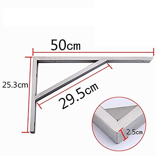 KaKaDz - Staffa di supporto angolare in metallo, montaggio a parete, angolo di 90 gradi, staffa ad angolo retto a forma di L, 2 pezzi, carico massimo 180 kg, 25.3*50cm