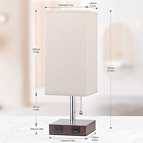 Kakanuo Lampada da Comodino con 2 Porte USB, Abat Jour da Comodino Interruttore a Tirare, Paralume in Tessuto Beige, Lampada da Tavolo LED Moderna per Camera da Letto Ufficio Salotto...