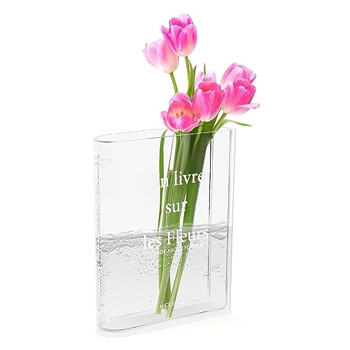 Kakbrt Vaso libro Trasparente per Fiori, Vaso da Scrivania in Acrilico per Bouquet di Tulipani, Moderno Arrangiamento Floreale per la Decorazione Della Casa e regali Creativi