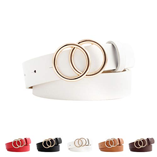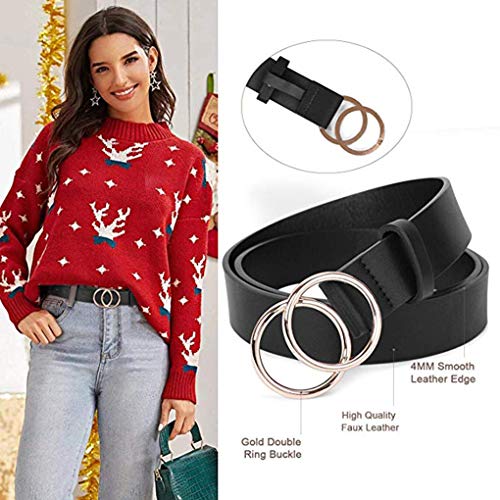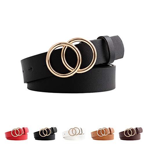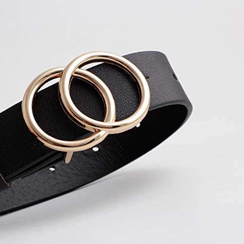 Kakiyi Cinturino in Vita Regolabile in Pelle Doppio Anello Cerchio Design Cintura Donna Semplice Design Solido delle Ragazze di Colore, Nero