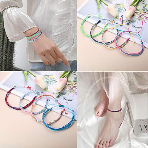 DESIGN ALLA MODA - I braccialetti impermeabili sono realizzati con fili rivestiti di cera. I braccialetti colorati sono perfetti per l'estate e la spiaggia, puoi indossare colori diversi che si adattano ai tuoi diversi sentimenti. Ogni giorno ha una nuova sensazione, in modo da avere un aspetto diverso ogni giorno