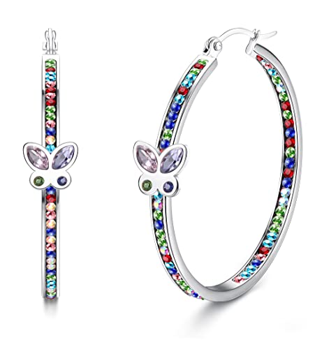 Kakonia 2 pollici Splendidi orecchini a cerchio in acciaio inossidabile multicolore con zirconi da donna Inside-Out CZ ipoallergenici Orecchini a cerchio con farfalla grandi grandi e carini