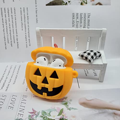 KAKUYI Custodia per AirPods, Soft Silicon 3D Cute Cartoon Funny Case Cover Compatibile con AirPods 2/1, Design Anime con Portachiavi per Bambini (Zucca)