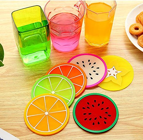 KaLaiXing - Sottobicchieri antiscivolo in silicone, isolanti, decorati con fette di frutta, per tazze e bicchieri, diametro: 9 cm. 6 pz.