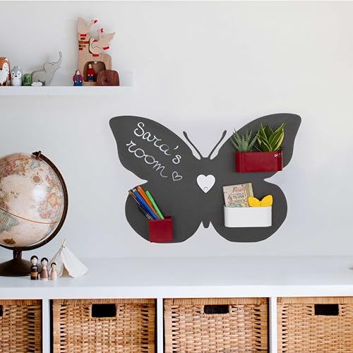 KalaMitica - Farfalla Design, Lavagna Magnetica da Parete - Scrivibile e Cancellabile con Gessetti - Nero Antracite - 56x38 cm