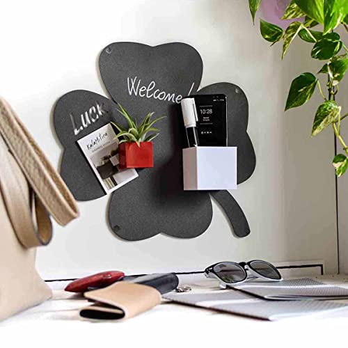 KalaMitica - Lavagna Magnetica da Parete - Scrivibile e Cancellabile con Gessetti - Quadrifoglio - Nero Antracite - 33x33 cm