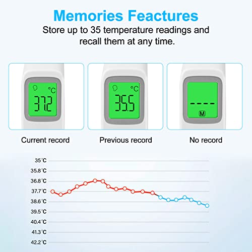 KALAOK Termometro Frontale, Termometro digitale a infrarossi Termometro digitale senza contatto, Letture istantanee Accurate, per Neonati, Bambini, AdultiIncludi (Includi la batteria)