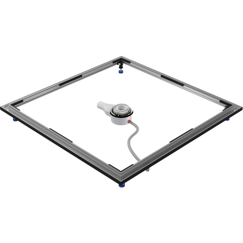 Sistema d'installazione Kaldewei telaio ESR a filo pavimento 80x130cm, con i seguenti accessori: DICHTSET BODENEBEN ESR con nastro sigillante, 2 angoli parete, 4 angoli multifunzionali Nastro sigillante butilico per la sigillatura interna Nastro fonoassorbente premontato su telaio Disaccoppiamento acustico 3D-Flex piedi (regolazione in altezza da 49 a 164 mm) con fissaggio a pavimento Chiave esagonale per la regolazione in altezza Piedi Ausiliari/pannelli di casseratura per la realizzazione di nicchie di massetto Supporto per la posa di piastrelle Set di scarico speciale per VES a filo pavimento (non incluso nella fornitura)