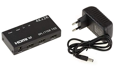 Kalea-Informatique - SPLITTER HDMI 1.4B 2 porte - RESOLUZIONE 4K 2160x3840 / COMPATIBILE 3D - Duplica il suono e l'immagine di una sorgente HDMI verso 2 uscite Simultanee, scatola in metallo