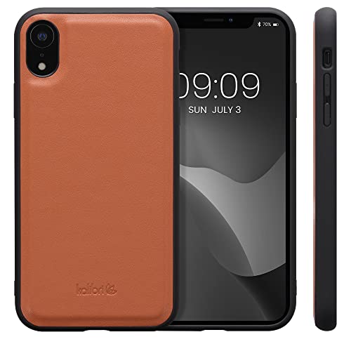 Kalibri Cover Compatibile con Apple iPhone XR - Backcover in Pelle con Bordi Antiscivolo in TPU - Custodia Protettiva Vera Pelle