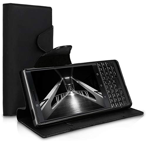 Kalibri Cover Compatibile con Blackberry KEYtwo (Key2) - Custodia a Portafoglio in Vera Pelle - Cover con Porta Carte e Supporto - Stand Wallet Case