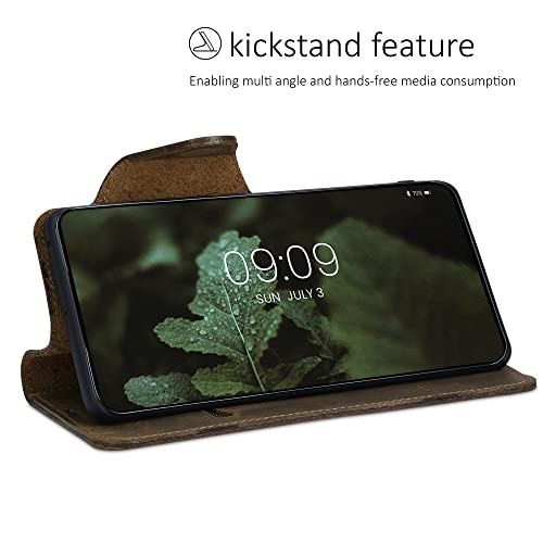 Kalibri Cover Compatibile con Honor 50 - Custodia a Portafoglio in Vera Pelle - Cover con Porta Carte e Supporto - Stand Wallet Case