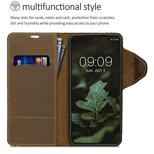 Kalibri Cover Compatibile con Motorola Edge 30 - Custodia a Portafoglio in Vera Pelle - Cover con Porta Carte e Supporto - Stand Wallet Case