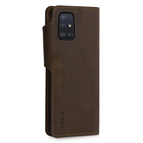Kalibri Cover Compatibile con Samsung Galaxy A51 - Custodia a Portafoglio in Vera Pelle - Cover con Porta Carte e Supporto - Stand Wallet Case