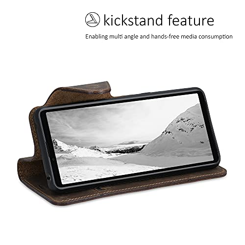 Kalibri Cover Compatibile con Sony Xperia 10 III - Custodia a Portafoglio in Vera Pelle - Cover con Porta Carte e Supporto - Stand Wallet Case