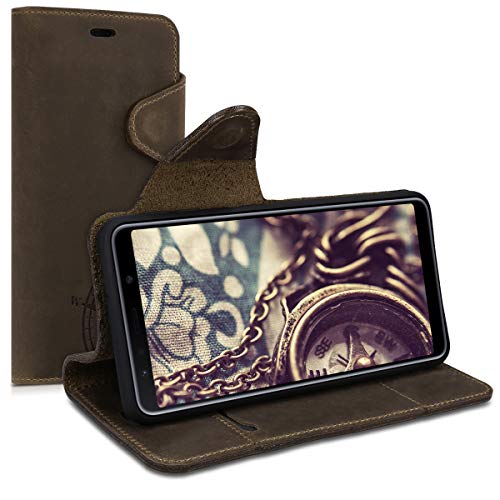 CLASSIC STYLE: la custodia a portafoglio per Samsung Galaxy A7 (2018) combina morbida pelle naturale con una pratica funzione di appoggio e protegge lo smartphone da graffi e segni di usura. Con chiusura magnetica.