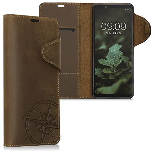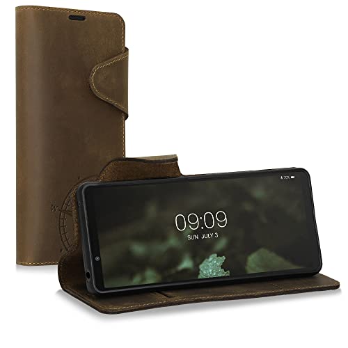 Kalibri Cover in Pelle Compatibile con Sony Xperia 1 IV - Cover con Porta Carte e Funzione Stand Chiusura Magnetica - Wallet Case Custodia Protettiva - Bussola Vintage Marrone